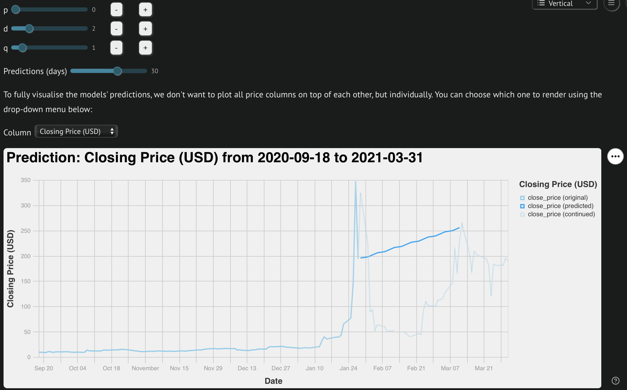 Dieses Beispiel nutzt die historischen Börsendaten von GameStop unmittelbar vor der Börsenkatastrophe in 2021.