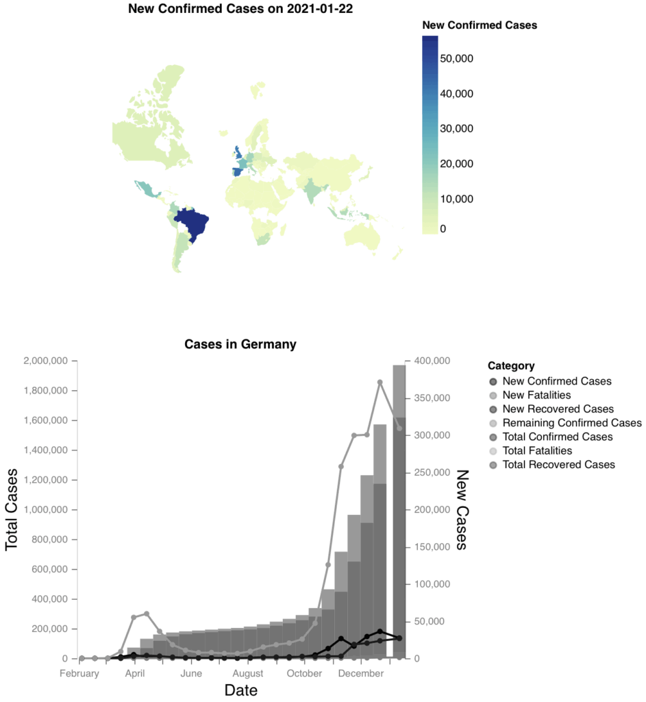 (Für interaktive Demos werden Sie auf github.io umgeleitet. Bitte haben Sie beim Aufbauen der Seiten Geduld; es werden veröffentlichte Daten und Graphikpakete in Echtzeit angefordert.)